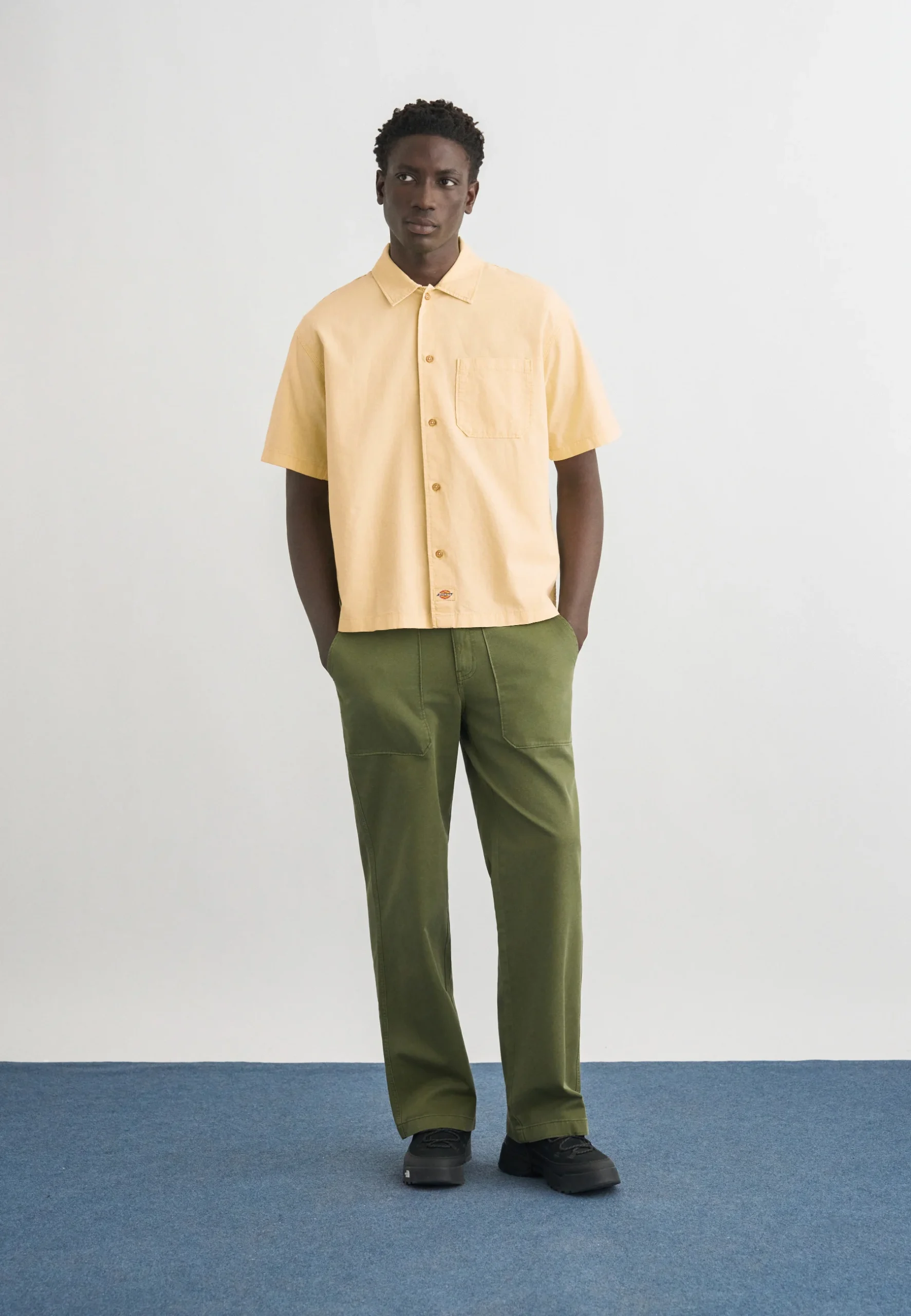 • Bolsillo redondeado en el pecho con etiqueta tejida de Dickies