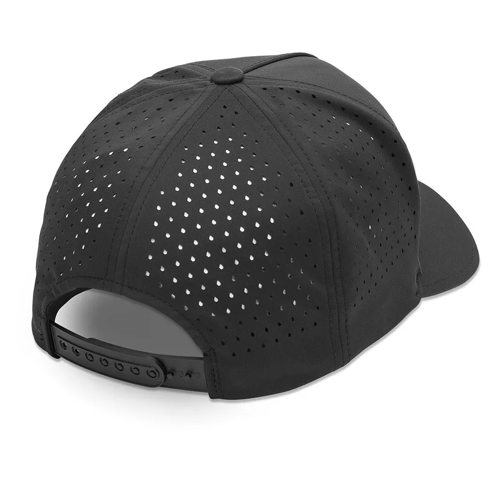 La gorra VOLCOM Vent Delta  para hombre combina estilo icónico con rendimiento avanzado. Diseñada para hombres activos, su tejido V.Co-Tech™ RESIST repele la humedad, manteniéndote seco bajo lluvia ligera y salpicaduras. Las ventilaciones perforadas estratégicamente colocadas, con forma de piedra, garantizan un flujo de aire superior, canalizando activamente el calor y la humedad para mantenerte fresco. El clásico diseño estructurado de 5 paneles presenta un cierre a presión ajustable para un ajuste personalizado y seguro. Terminada con un audaz logotipo bordado en 3D de Volcom Stone y una etiqueta tejida con el nombre de la marca, esta gorra es el equipo esencial para cualquier aventura