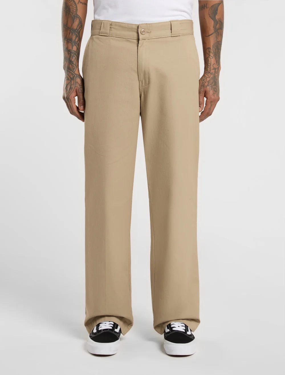 Pantalón para hombre  beige de Dickies Influenciado por décadas de historia y artesanía, el pantalón de trabajo recto 247 es un clásico con un corte y un tejido modernizado. El tejido de sarga de algodón tiene un tacto ligeramente aterciopelado, lo que le da un acabado más suave y cómodo para el uso diario. Este pantalón inspirado en la ropa de trabajo se renueva con una cinturilla elástica y estampado en contraste, así como un cierre con cremallera y botón personalizado. Una pinza en la parte delantera y trasera le da a la prenda un toque refinado, mientras los bolsillos traseros ribeteados y los bolsillos diagonales en la parte delantera te ofrecen un práctico espacio para guardar lo que necesites. Un pantalón de traje perfecto para cualquier ocasión. Venta online para Canarias en Duck Drive.