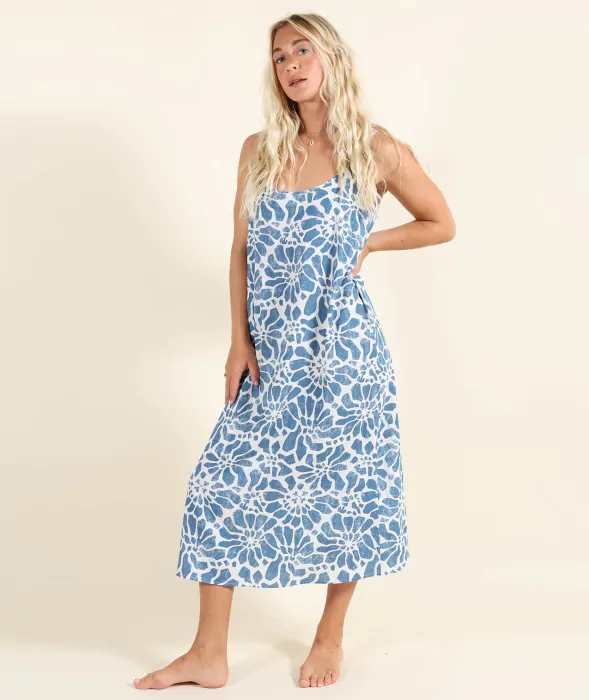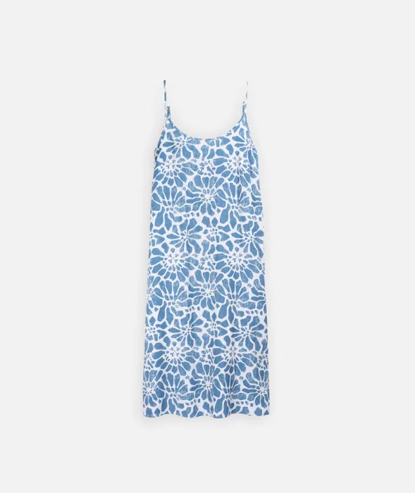 Vestido Oxbow para mujer estampado de lino/rayón con tirantes ajustables y etiquetas Oxbow en la espalda y el pecho. Venta online para Canarias en Duck Drive.